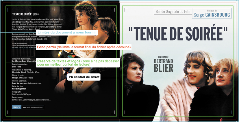 Voici le principe du fond perdu et de la réserve de texte & logos sur un livret standard :